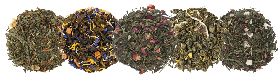 100% natural, flavored green teas. Small batch-crafted from gunpowder, chunmee, and sencha green tea varieties, these are flavored with natural oils for luscious character and impeccable mouthfeel. Flavor profiles ranging from Long Island Strawberry to Mint Green — something for every customer.