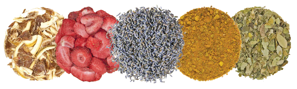 From camomile to spearmint and everything in between – we offer over 100 different single-source herbals. Discover a dependable supply of innovative drinking herbs, dried fruits, flowers, roots, spices, and other specialty tisanes. As always, we buy only from the top 10% of global producers, known for sustainable practices and ethics. And, thanks to our safe and secure supply-chains, we can offer 98% fulfillment rates. Our herbals make excellent additions to customs blends or delicately balanced tisanes on their own.