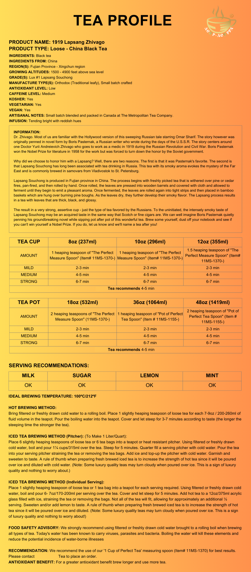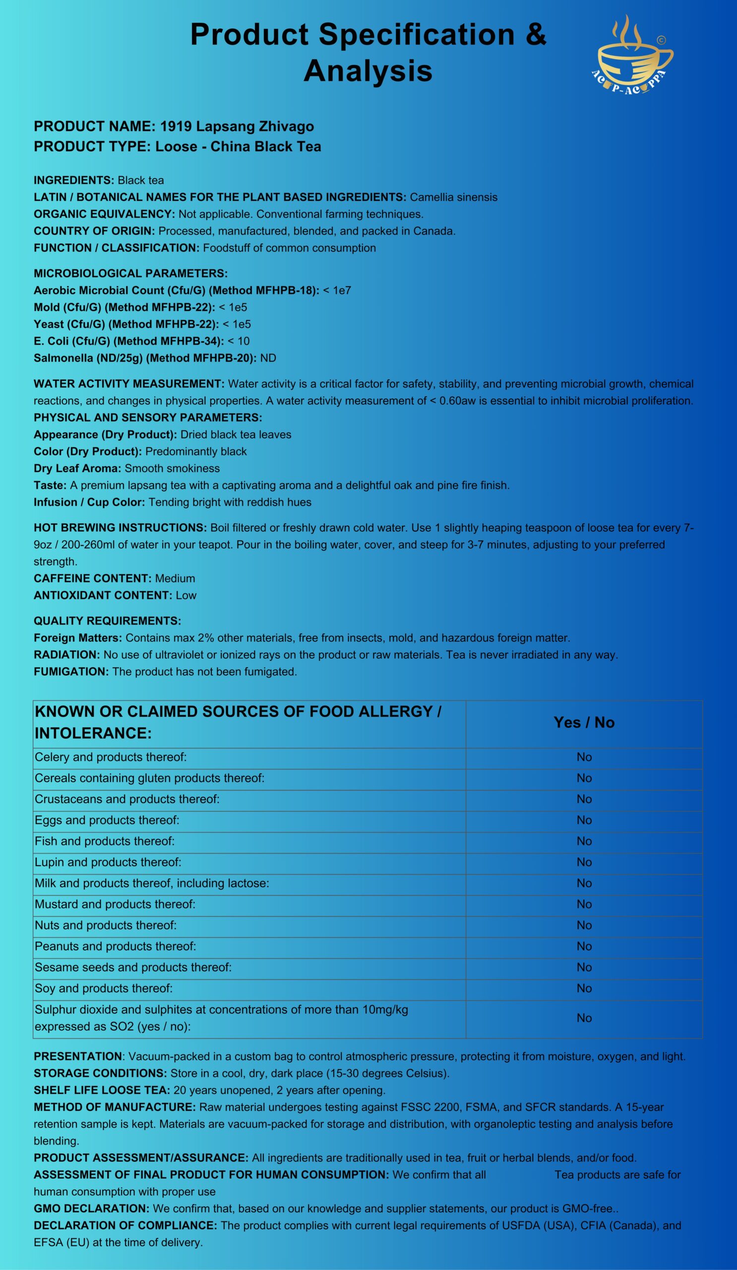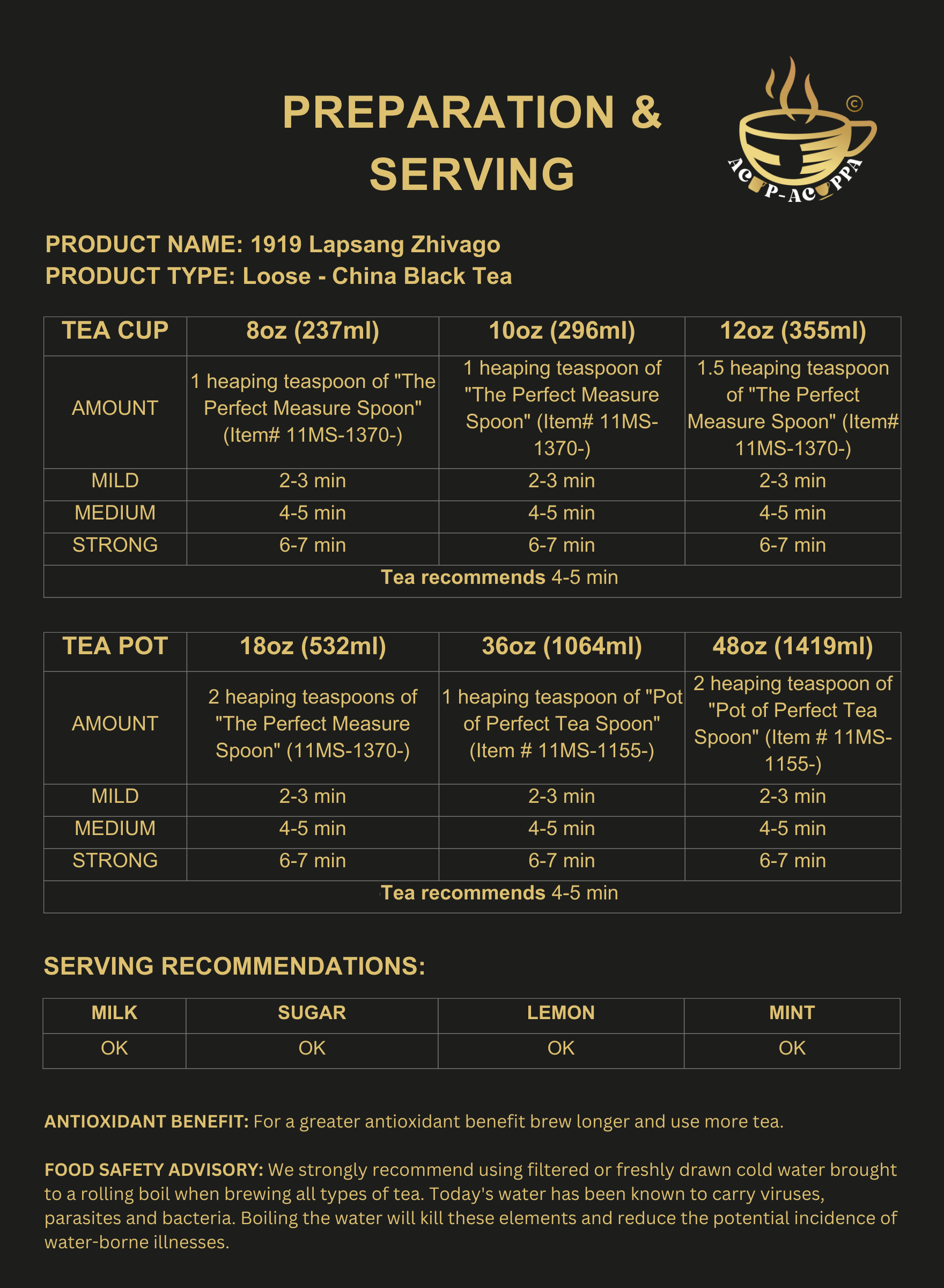 A delicious premium lapsang with captivating heady bouquet and a delicious mild oak and pine fire finish.