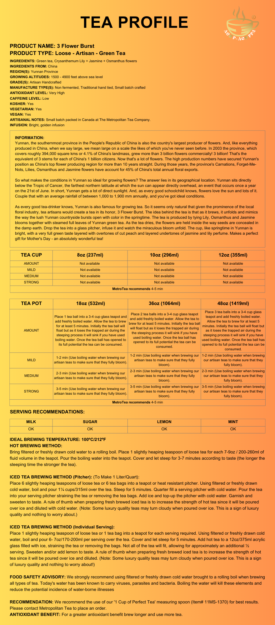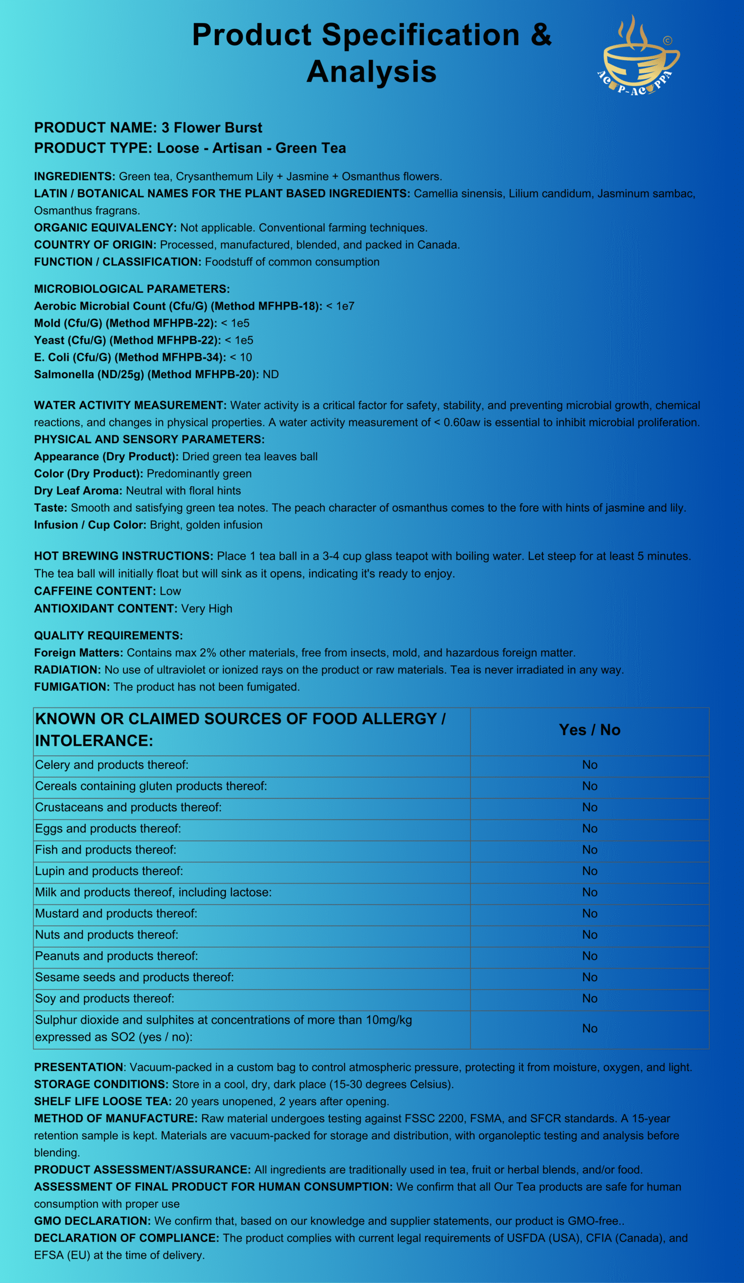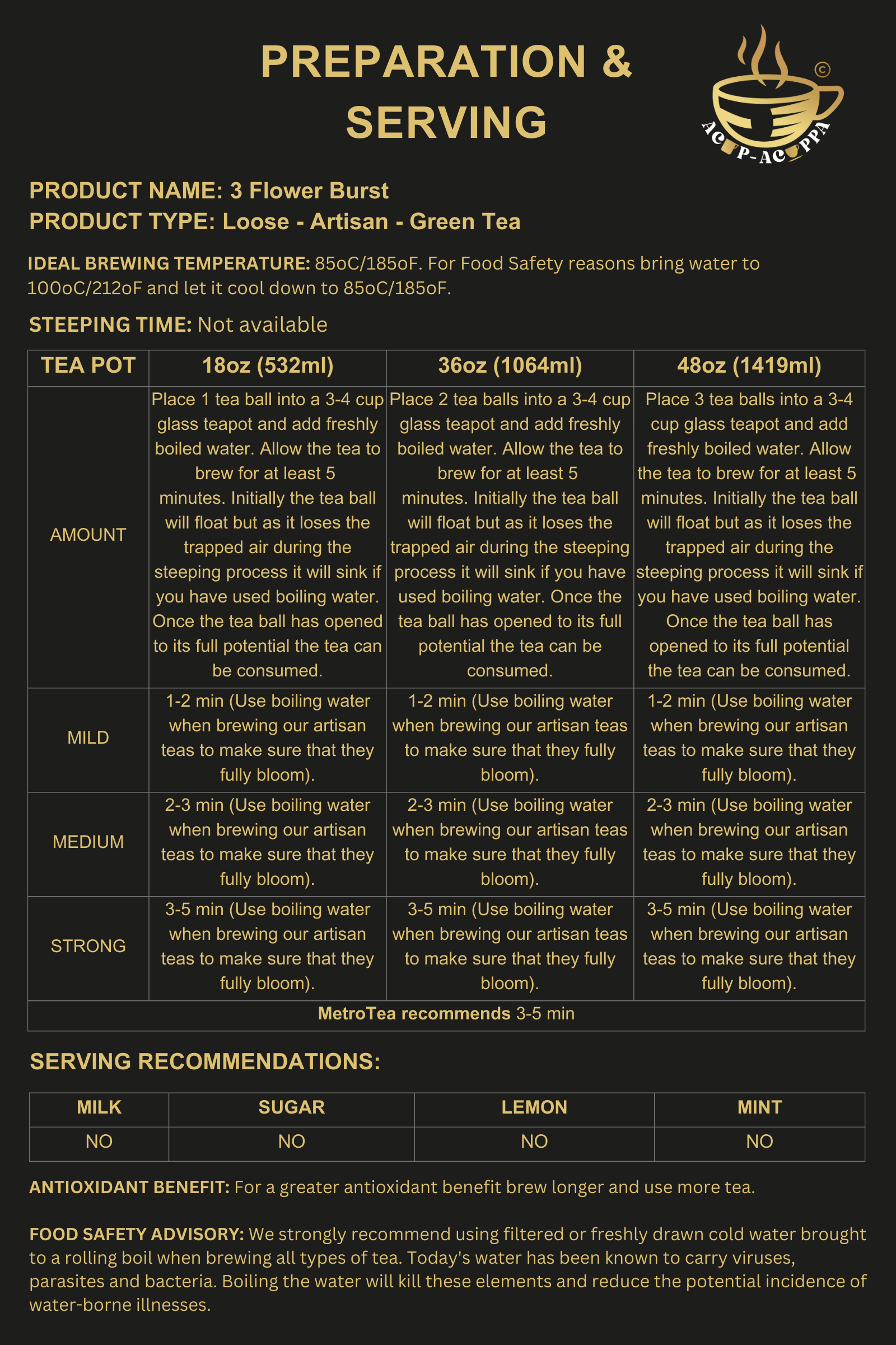 Luxury Ingredients: Green tea, Crysanthemum Lily + Jasmine + Osmanthus flowers.