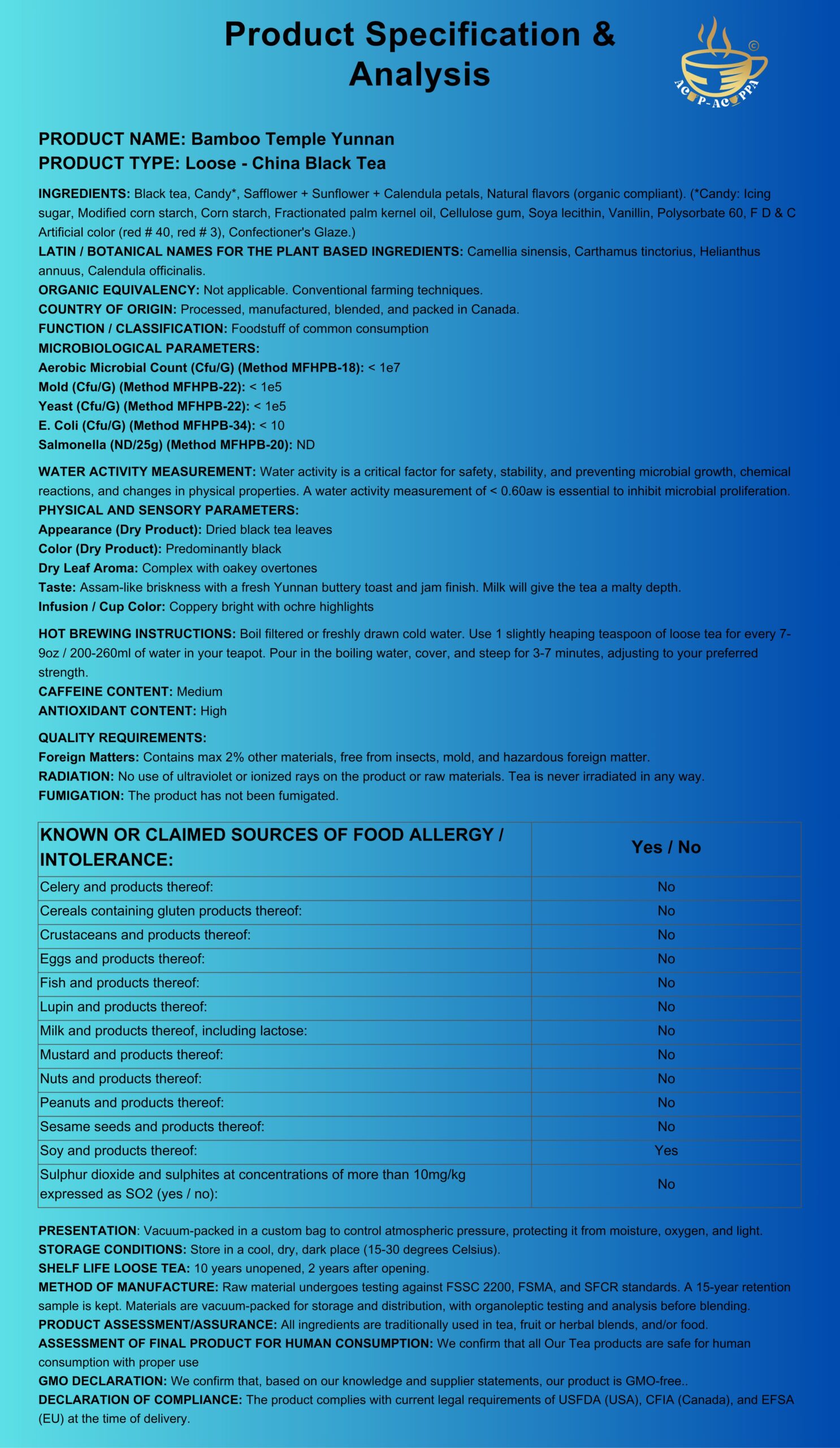 Small Batch Blended and Packed in: Canada