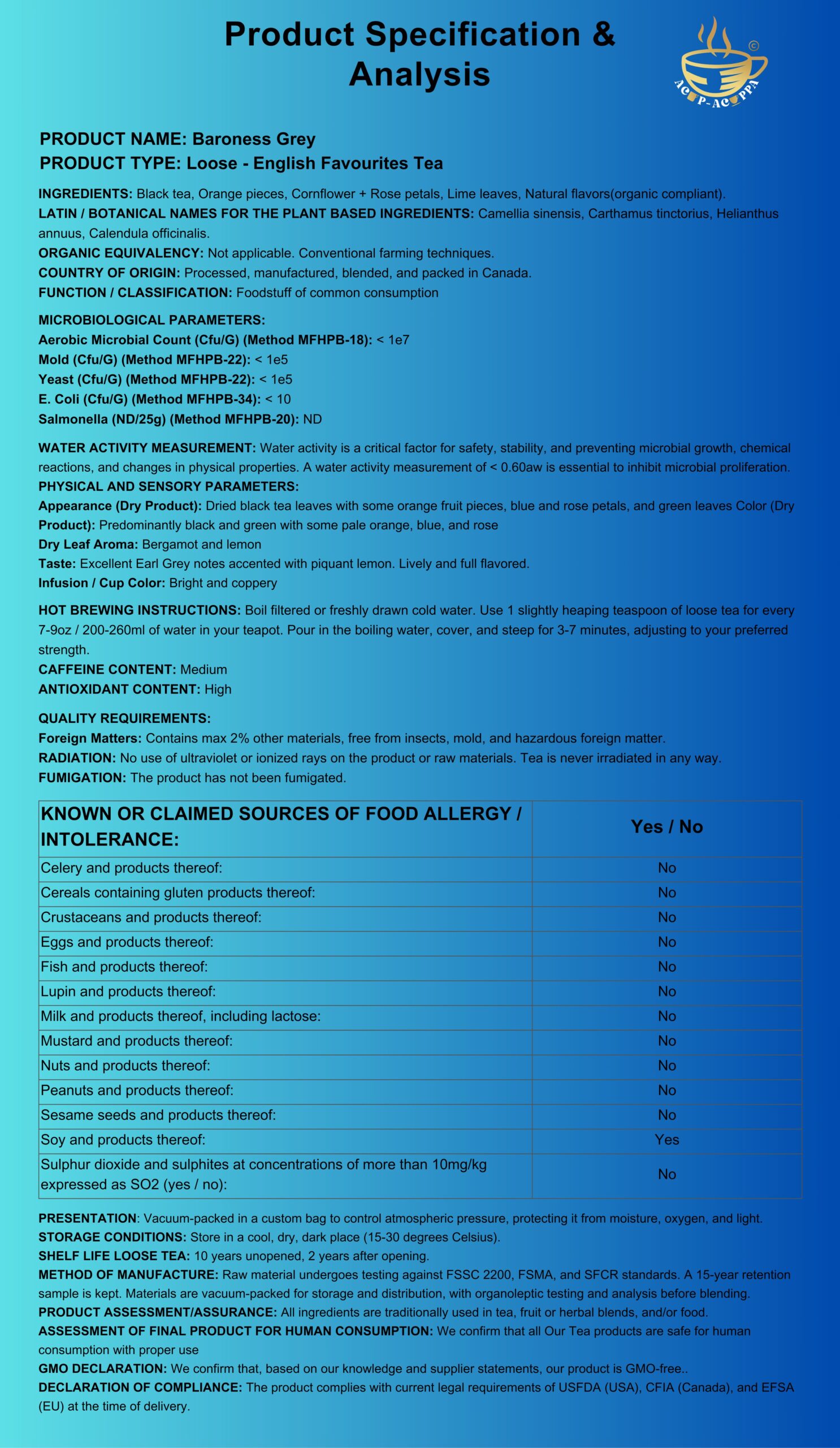 Luxury Ingredients: Black tea, Orange pieces, Cornflower + Rose petals, Lime leaves, Natural flavors(organic compliant).