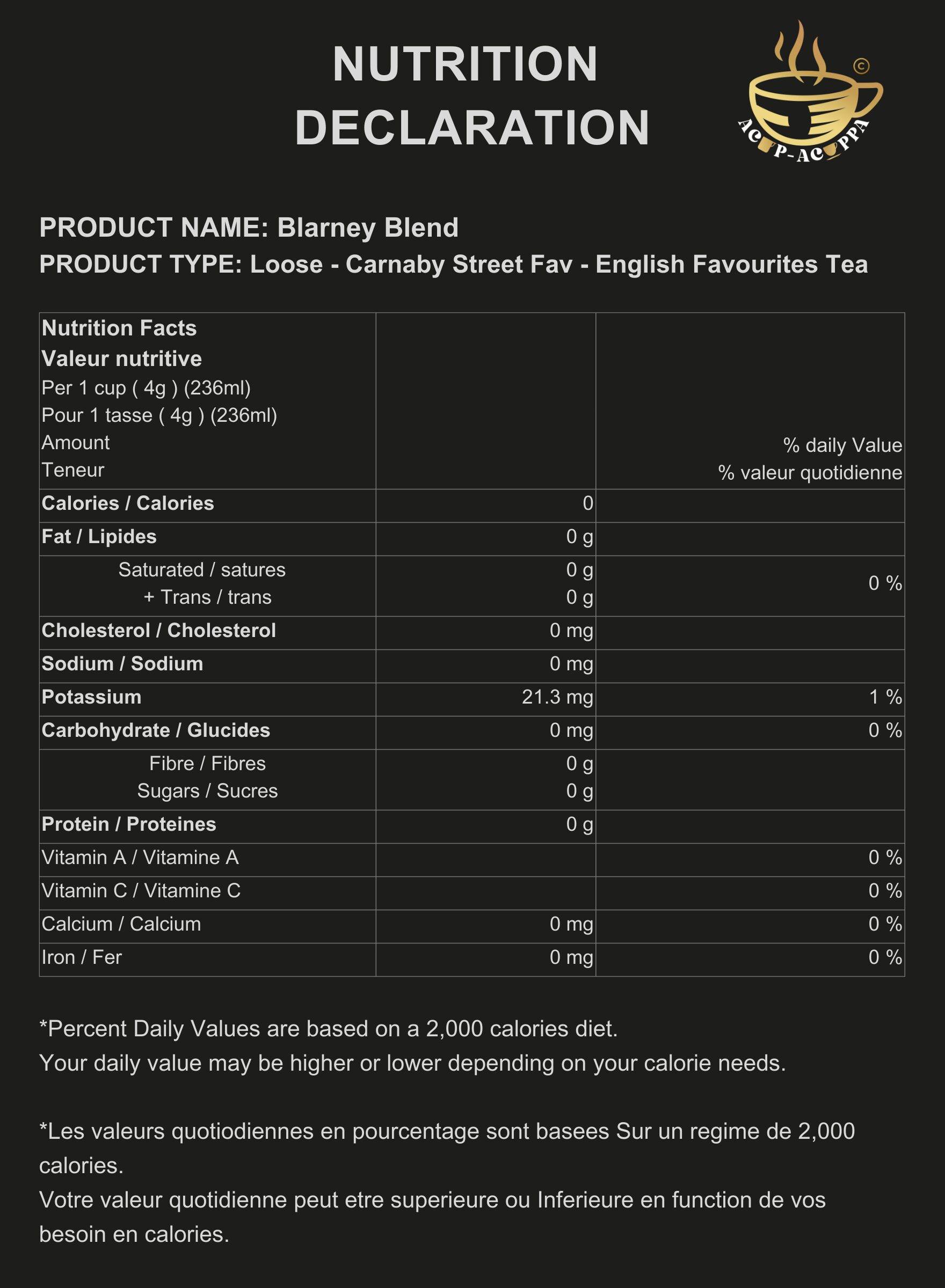 Luxury Ingredients: Black tea, Candy*, Natural flavors. (*Candy:Sugar,Corn starch,Palm oil,Confectioner glaze,Modified corn starch, Soy lecithin,Xanthan gum,Polysorbate 60, Yellow#5, Blue#1 dye) **Allergen Alert – Contains Soy**