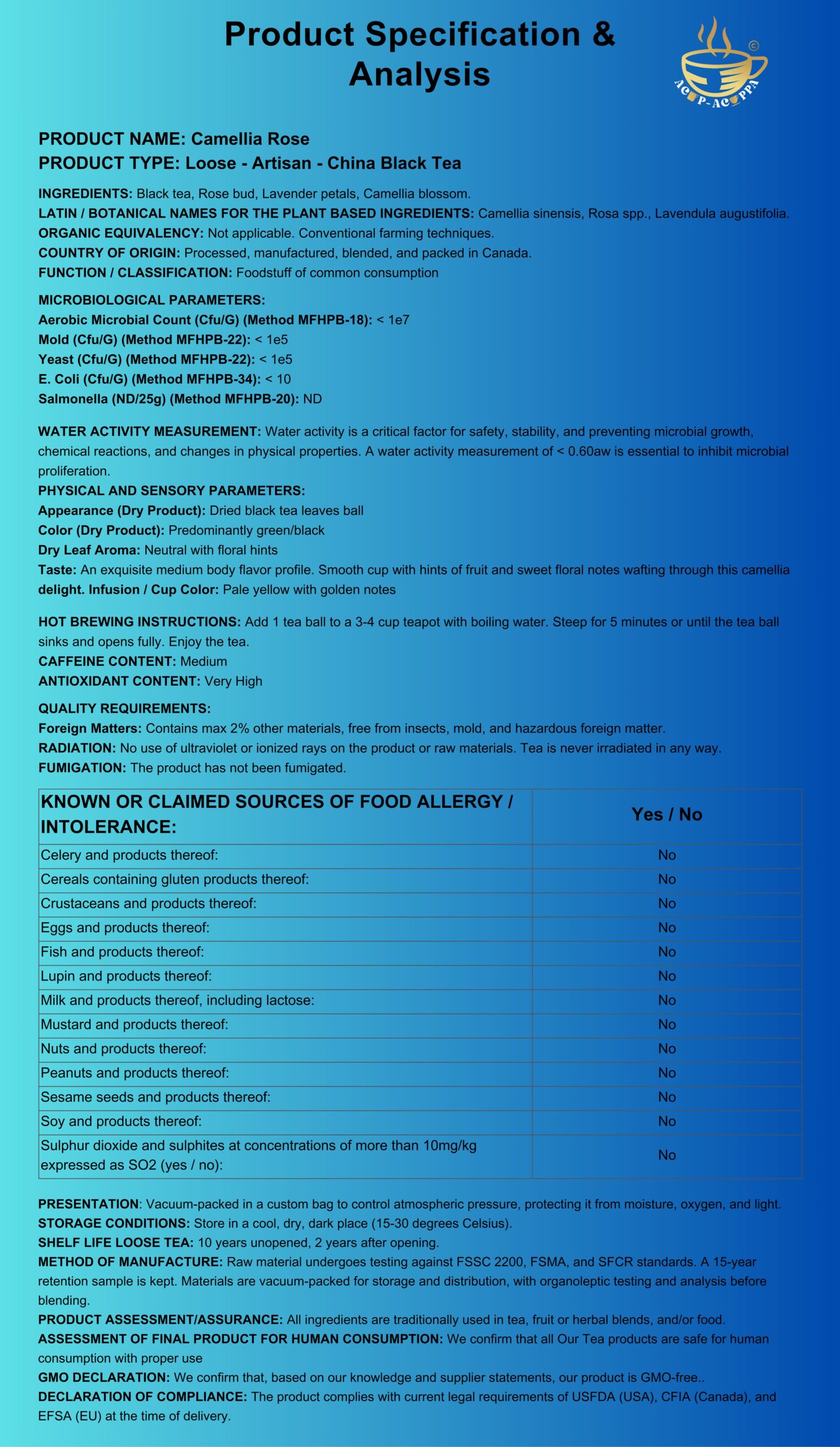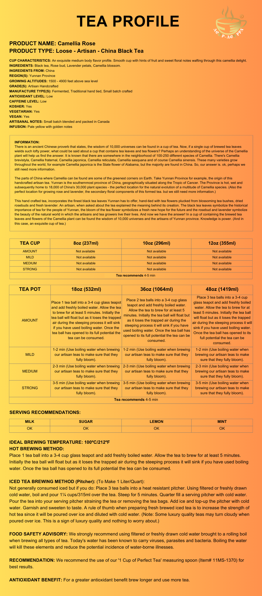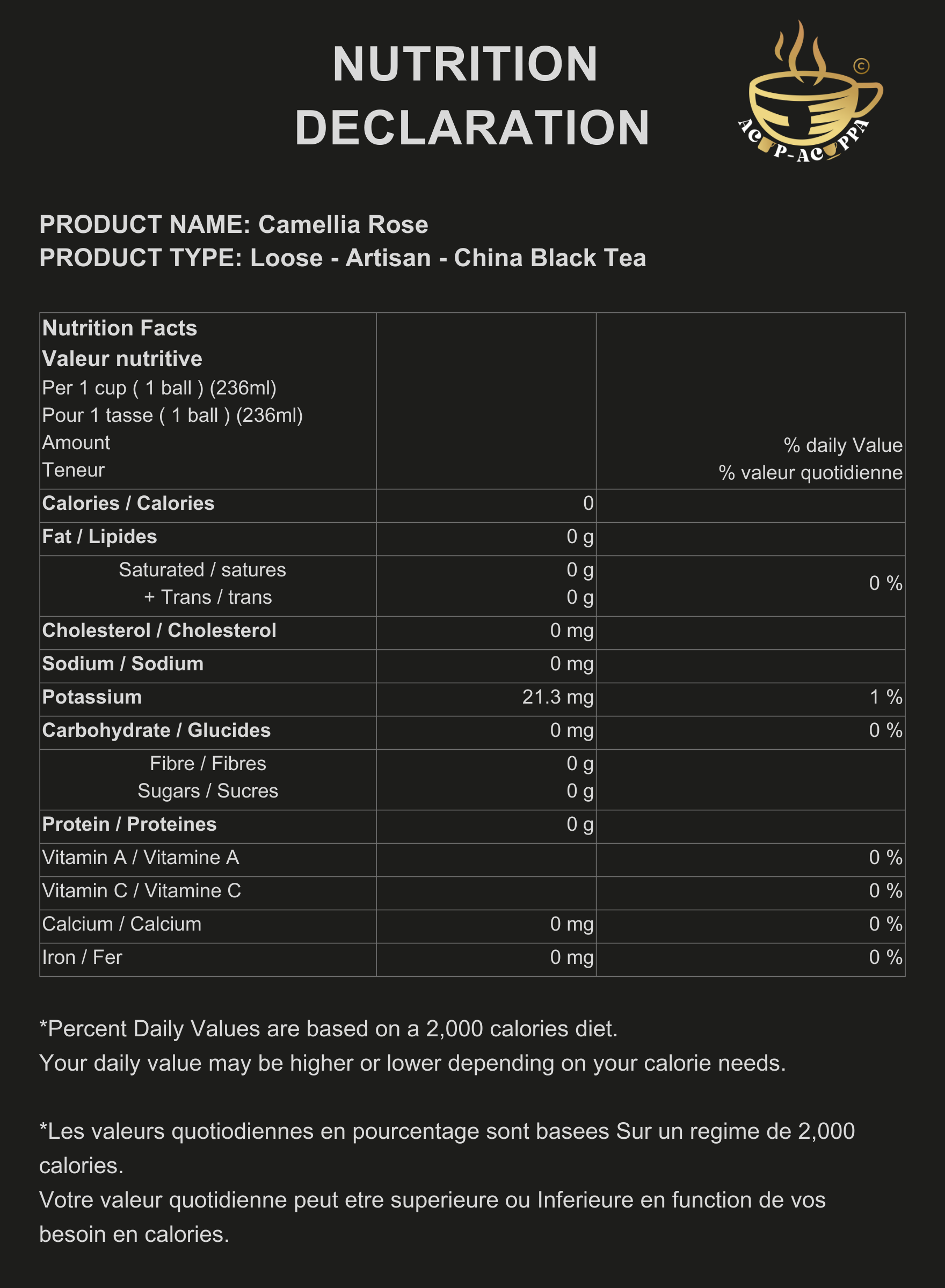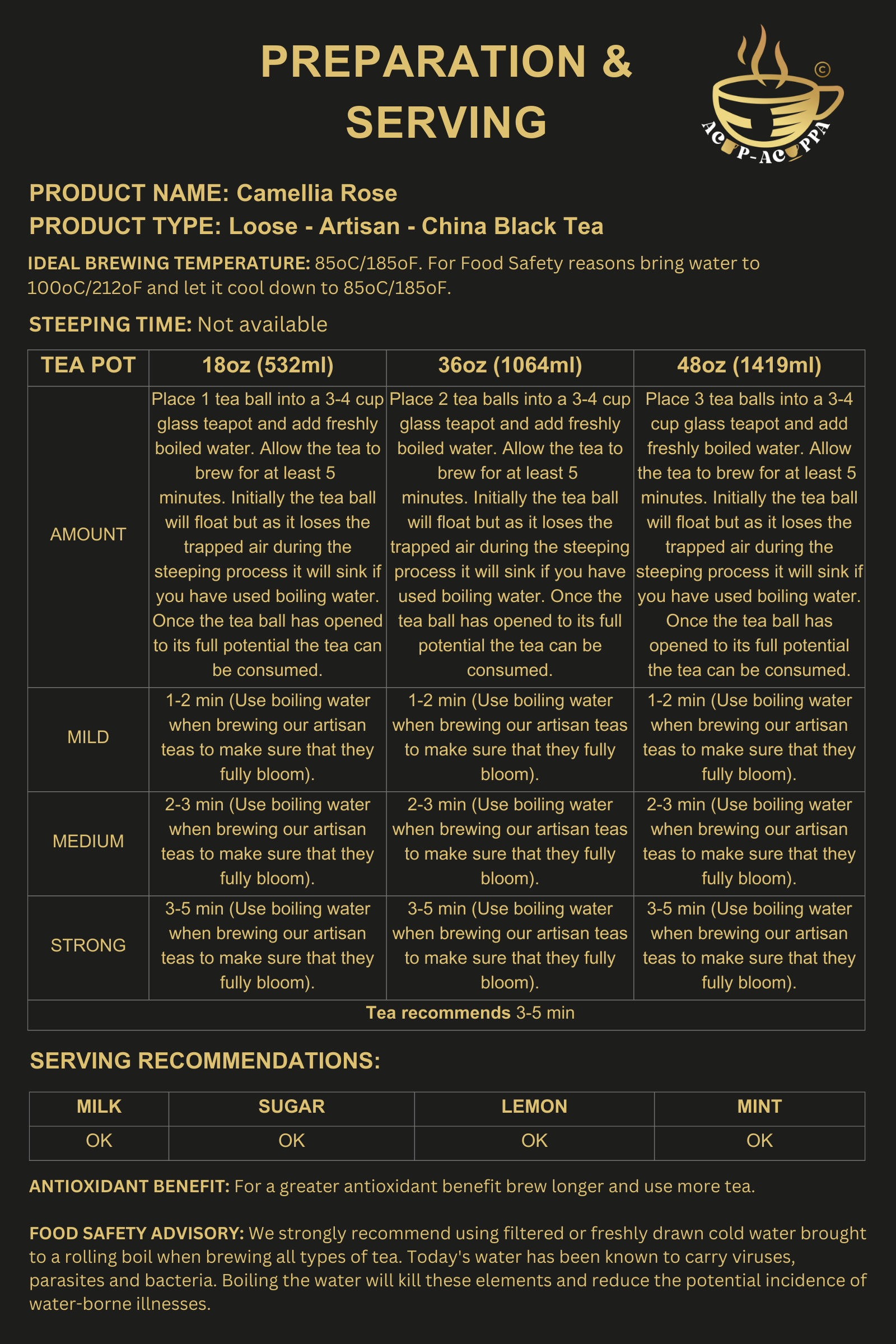 Luxury Ingredients: Black tea, Rose bud, Lavender petals, Camellia blossom.