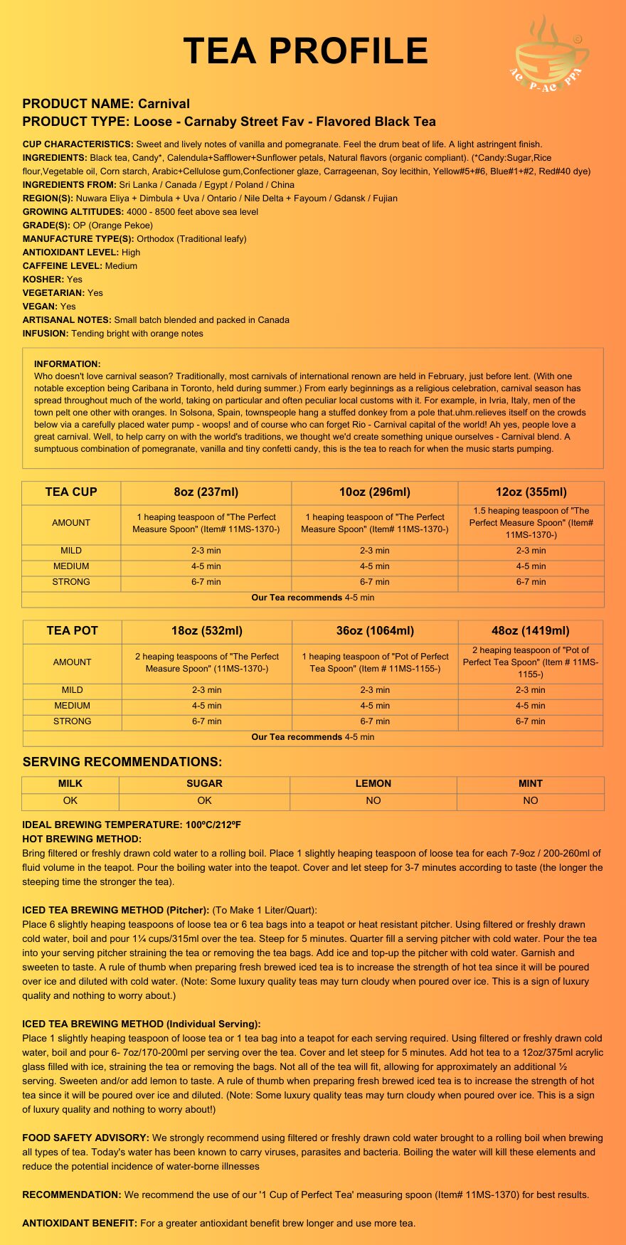 Region(s): Nuwara Eliya + Dimbula + Uva / Ontario / Nile Delta + Fayoum / Gdansk / Fujian