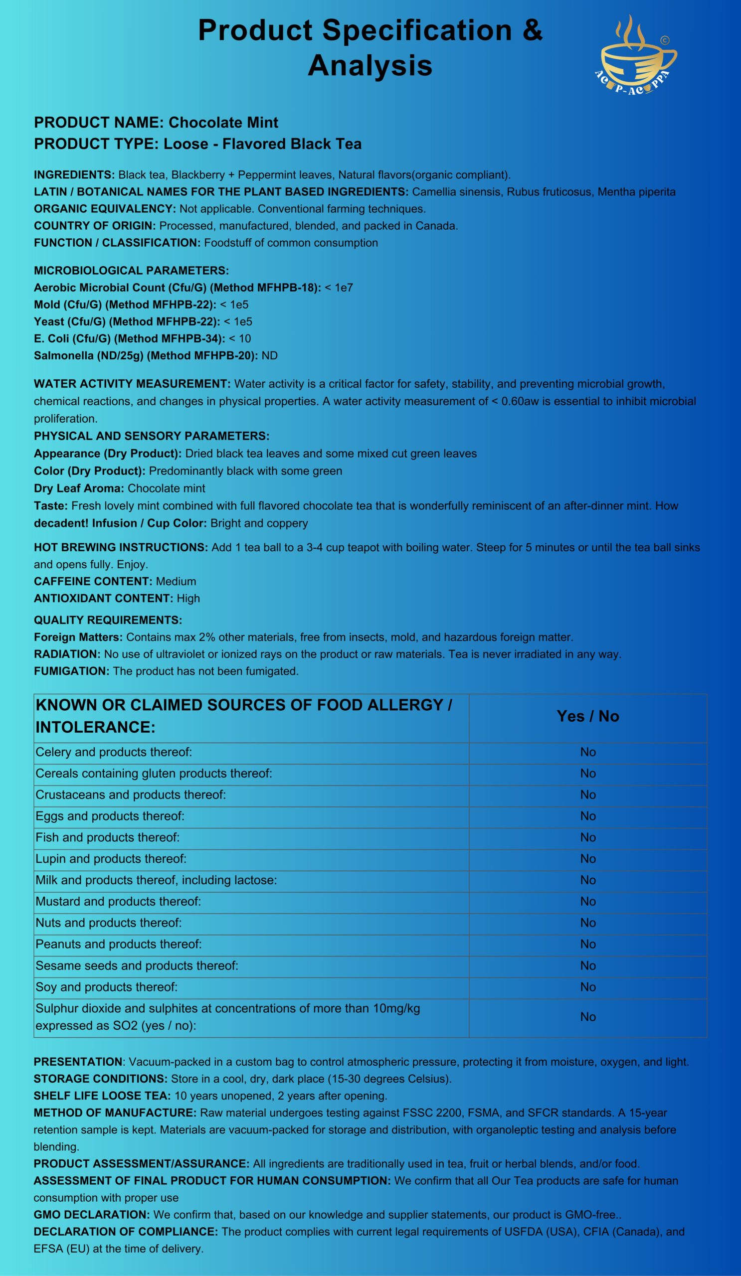 Luxury Ingredients: Black tea, Blackberry + Peppermint leaves, Natural flavors(organic compliant).
