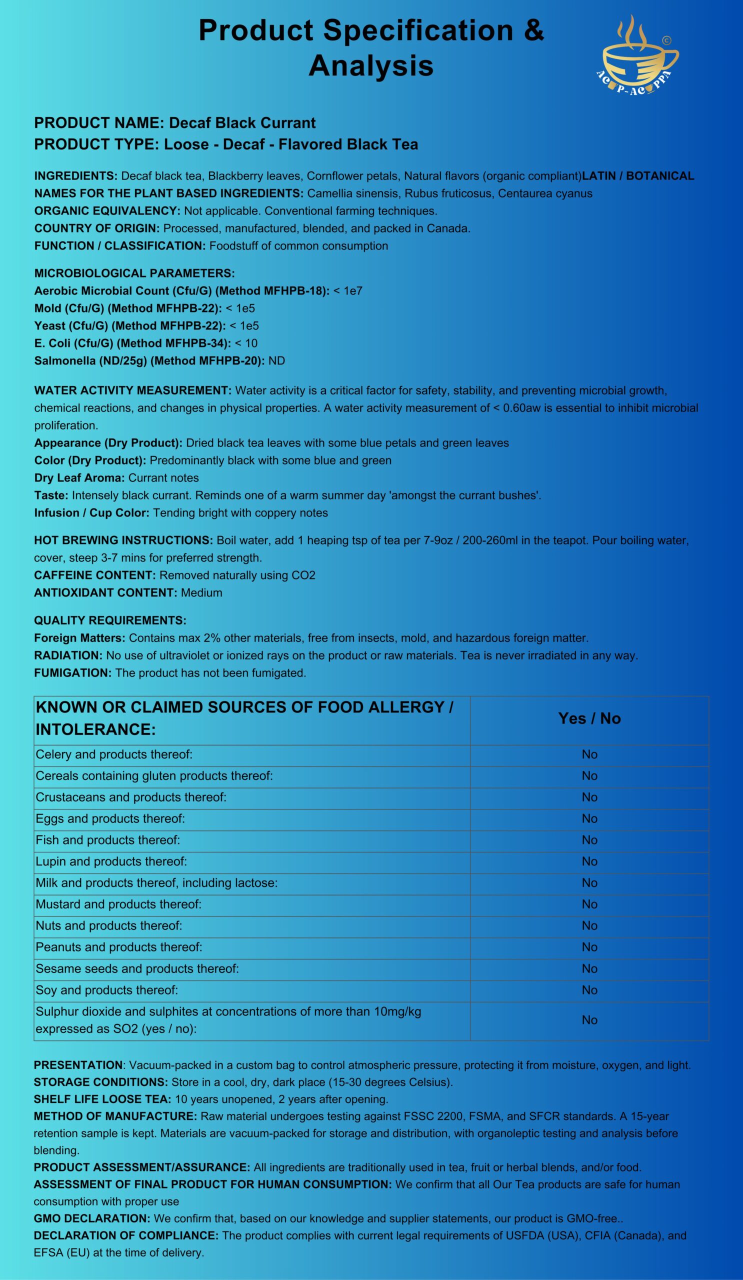 Luxury Ingredients: Decaf black tea, Blackberry leaves, Cornflower petals, Natural flavors (organic compliant)