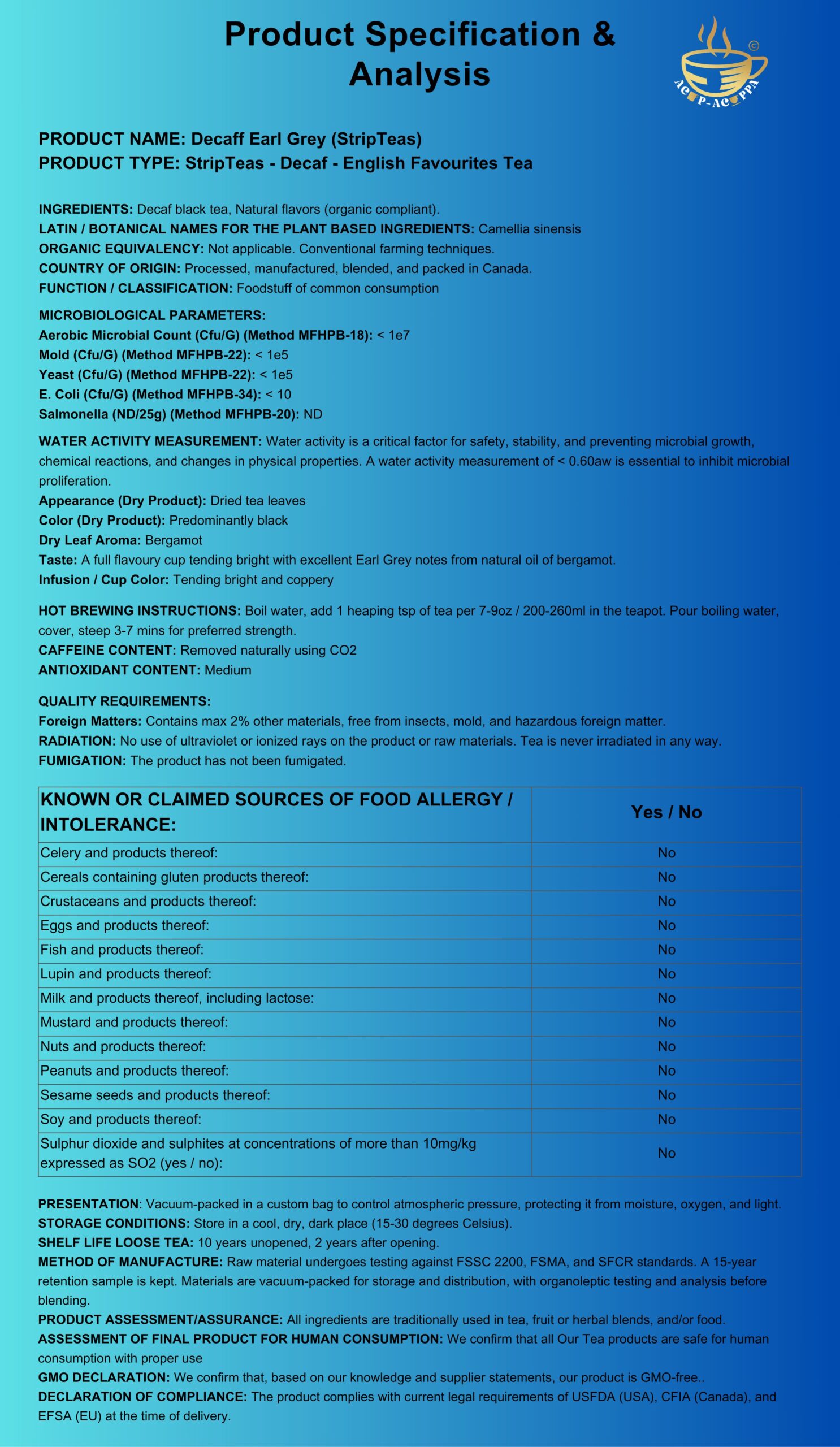 A full flavoury cup of tea tending bright with excellent Earl Grey notes from natural bergamot flavouring.