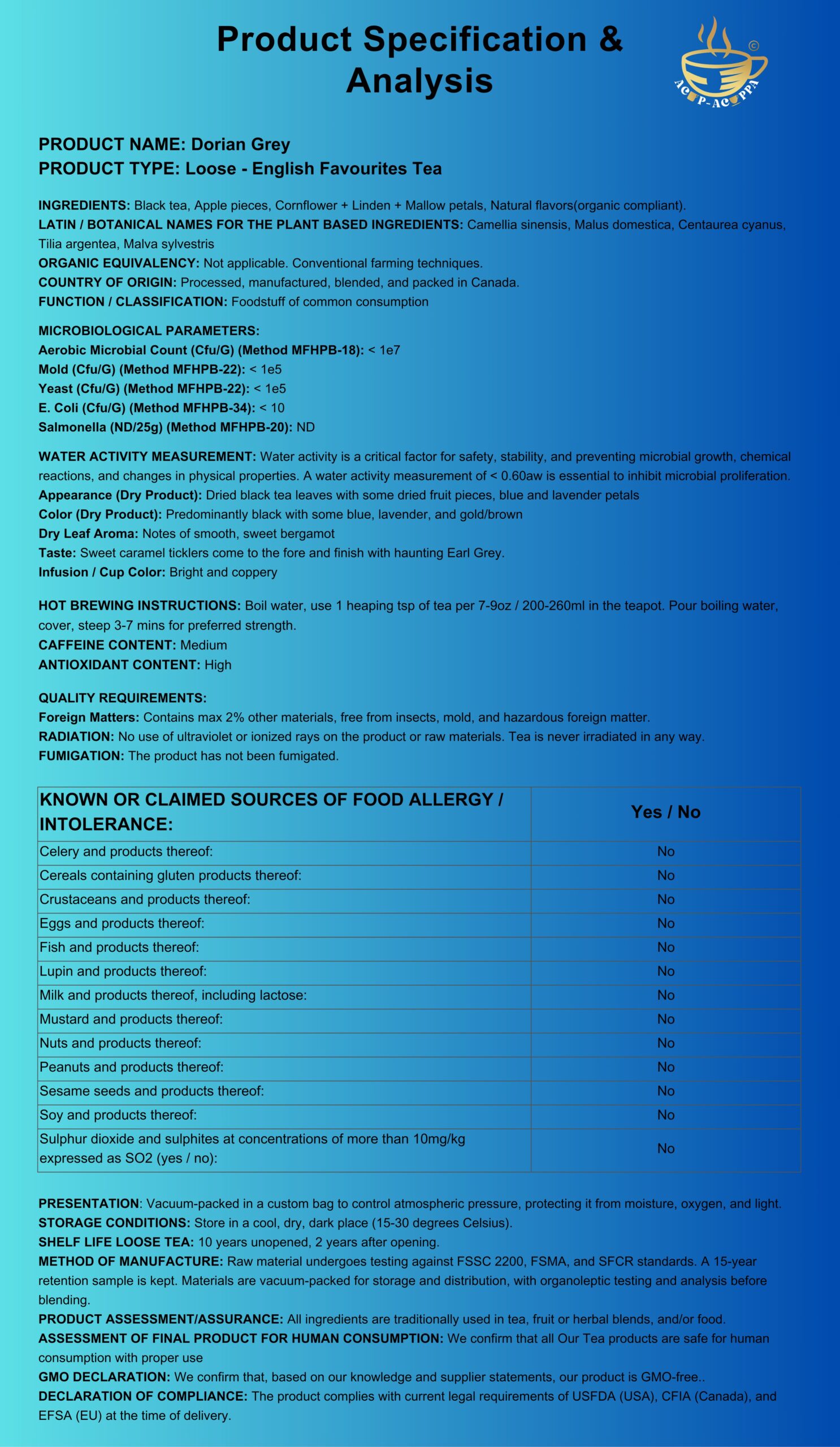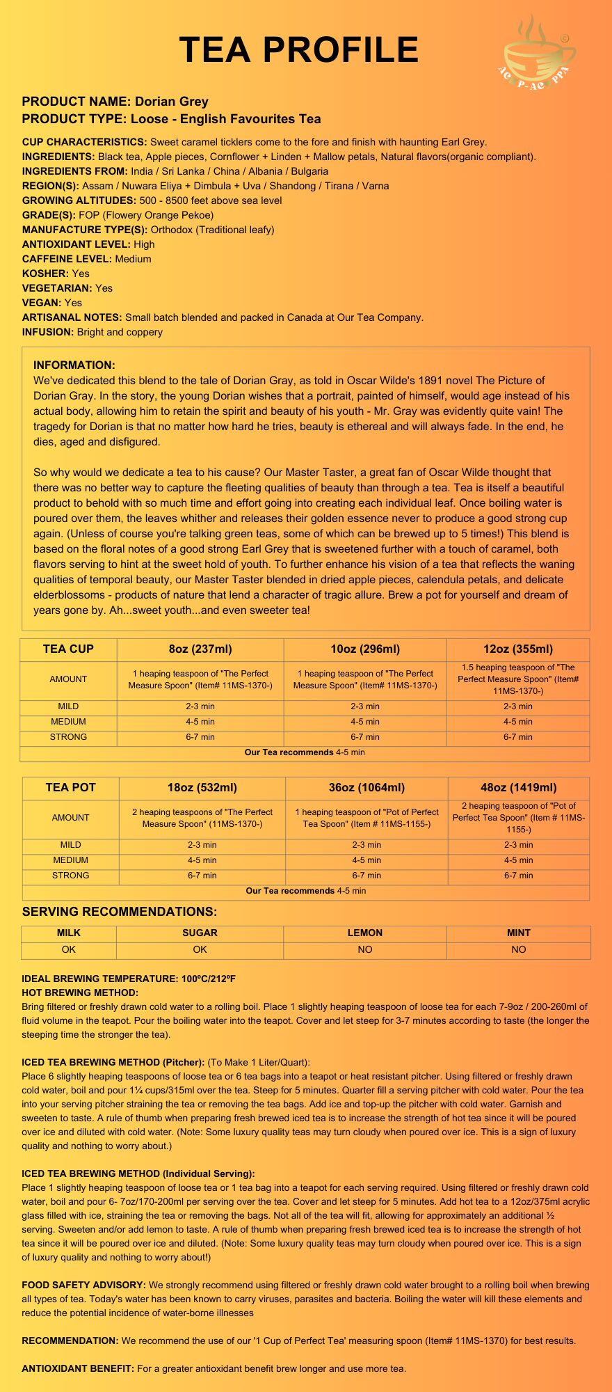 Luxury Ingredients: Black tea, Apple pieces, Cornflower + Linden + Mallow petals, Natural flavors(organic compliant).