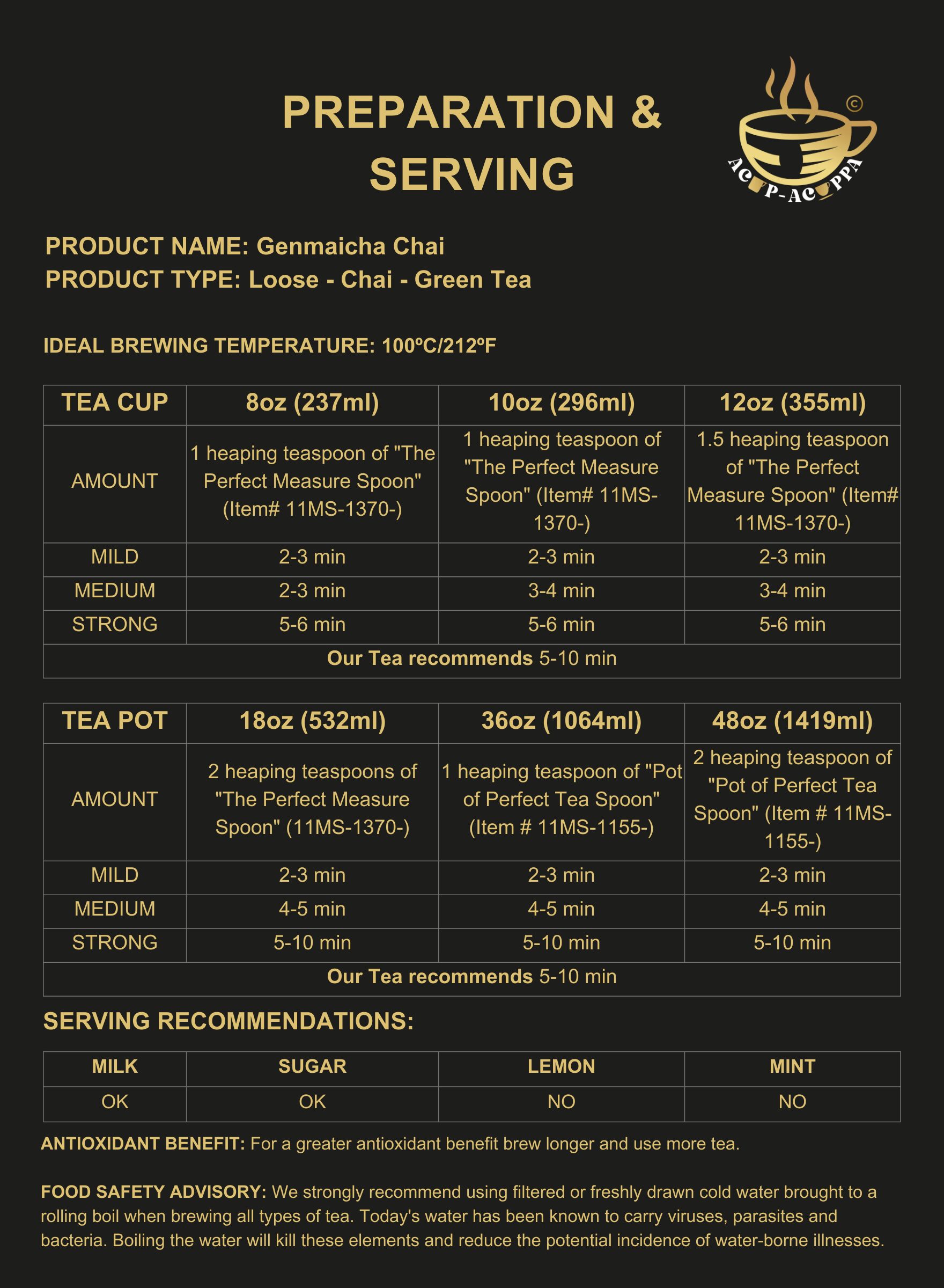Delicious toasty rice notes dappled with green tea and spice create a ceremonial tea union of Japan and India.
