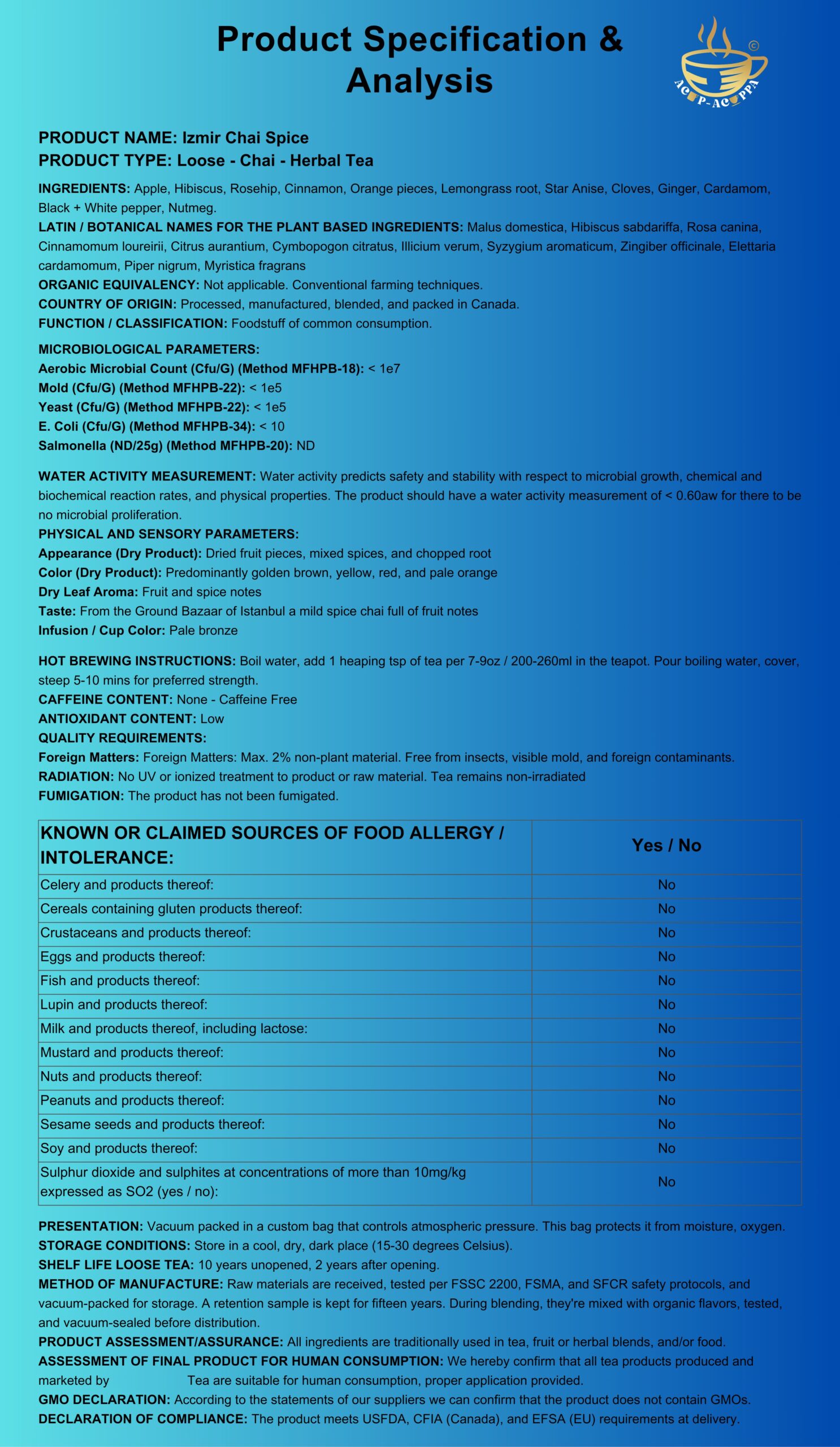 Luxury Ingredients: Apple, Hibiscus, Rosehip, Cinnamon, Orange pieces, Lemongrass root, Star Anise, Cloves, Ginger, Cardamom, Black + White pepper, Nutmeg.