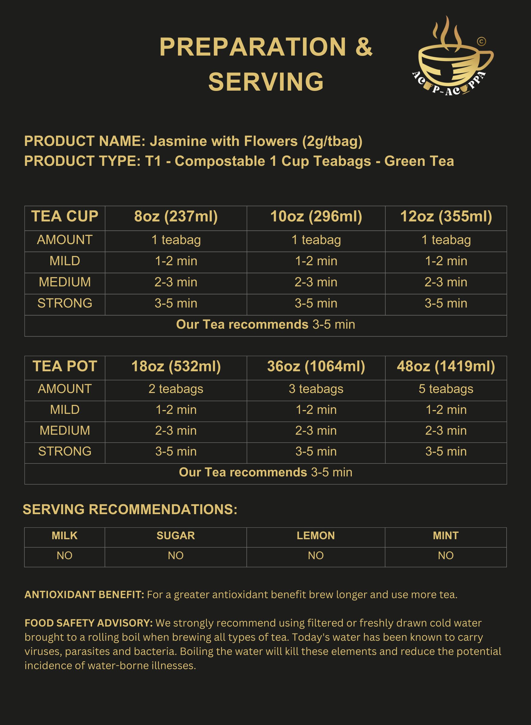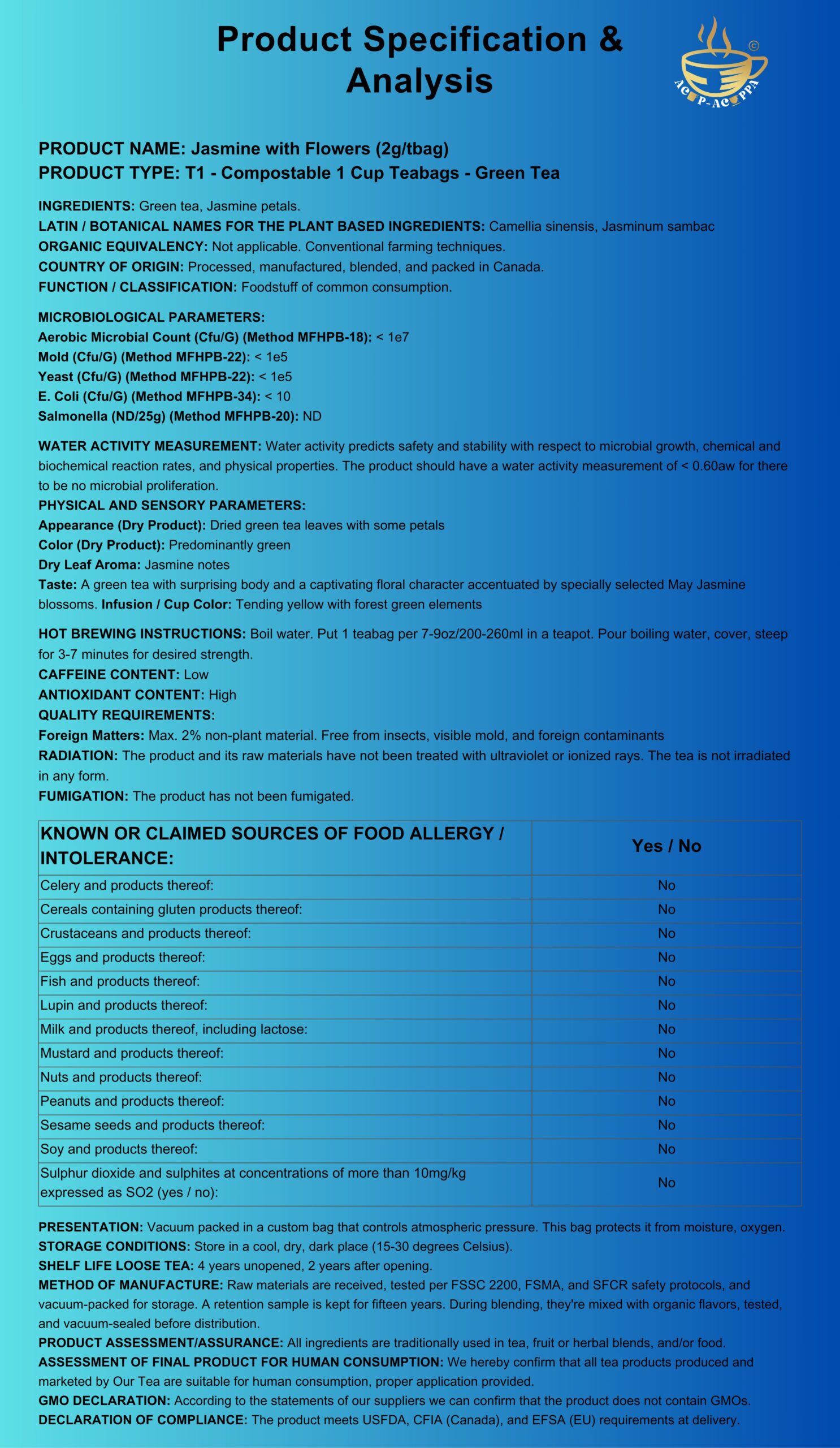 A green tea with surprising body and a captivating floral character accentuated by specially selected May Jasmine blossoms.