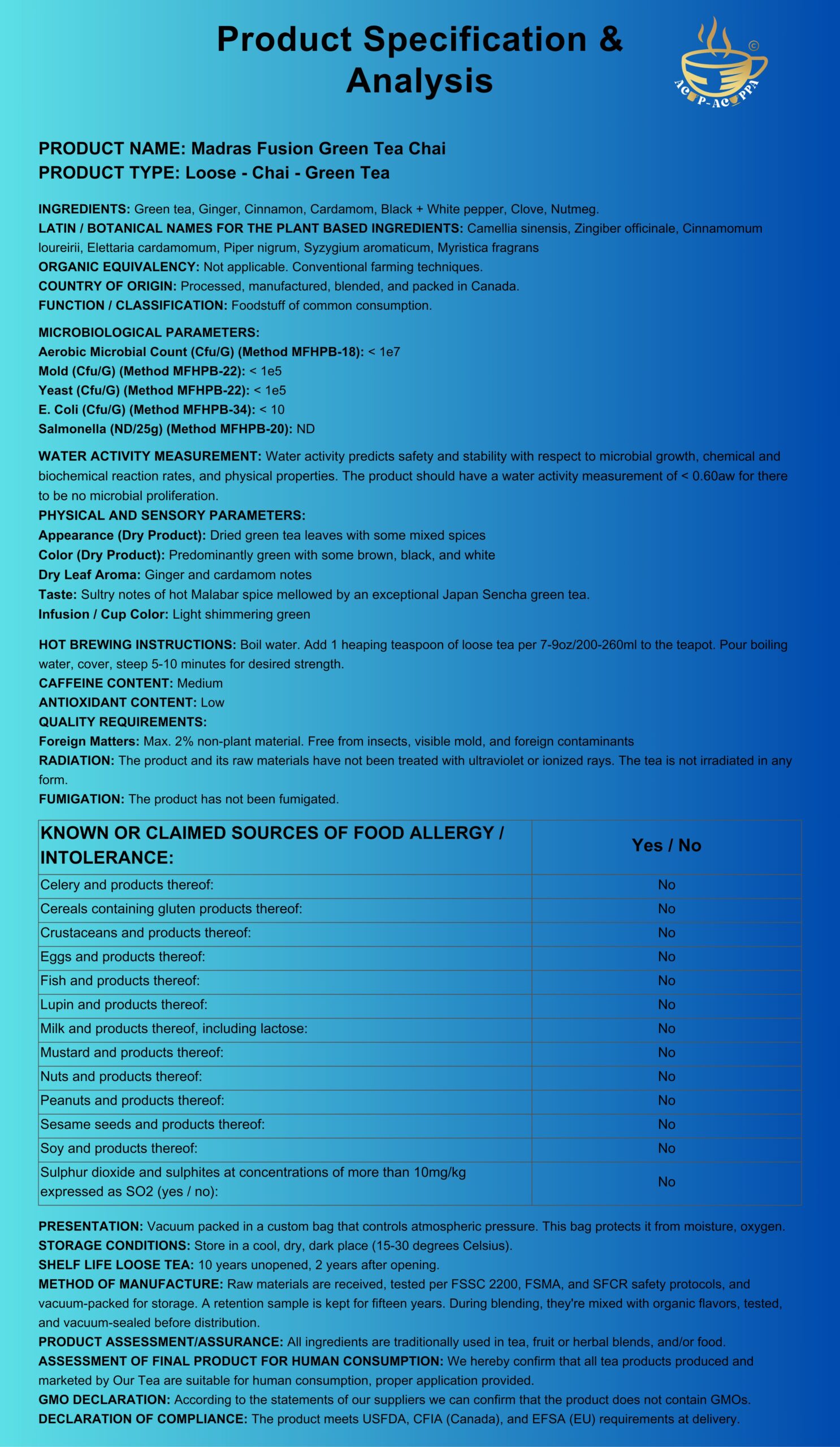 Sultry notes of hot Malabar spice mellowed by an exceptional Japan Sencha green tea.