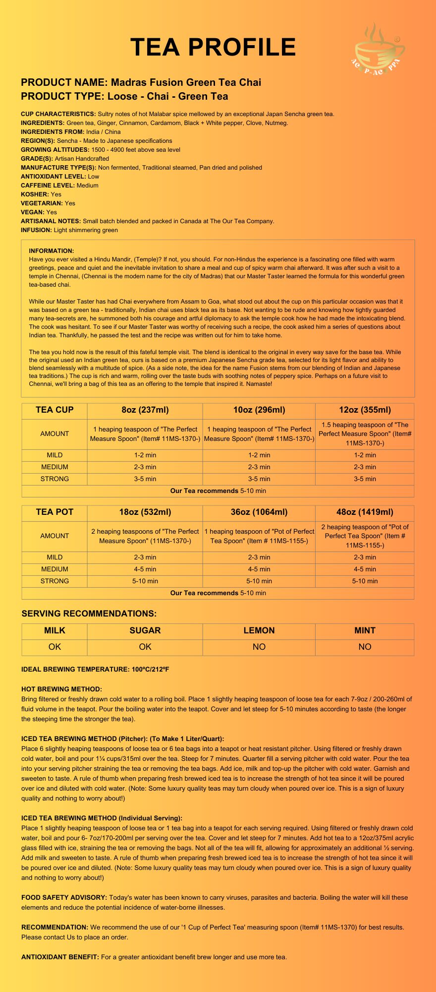 MADRAS FUSION GREEN TEA CHAI