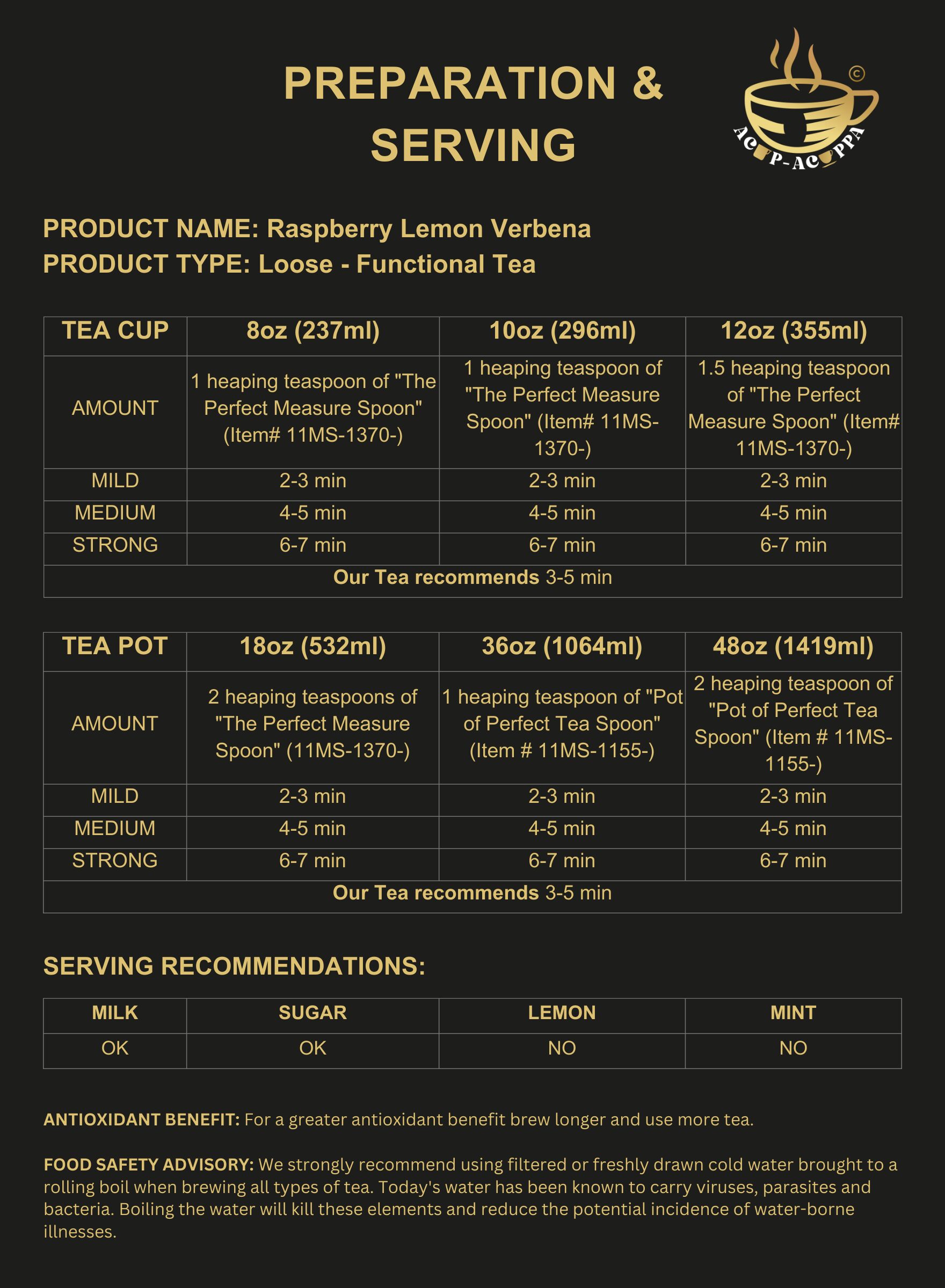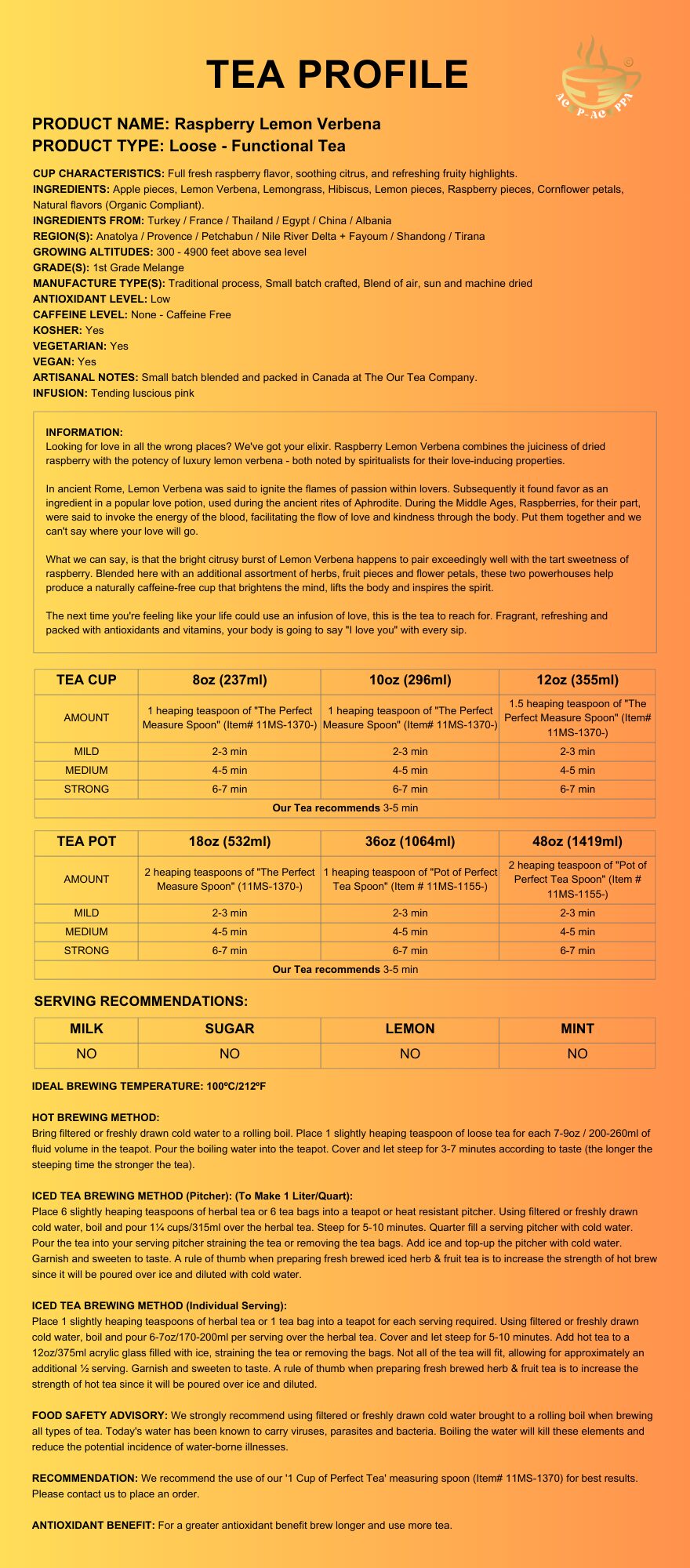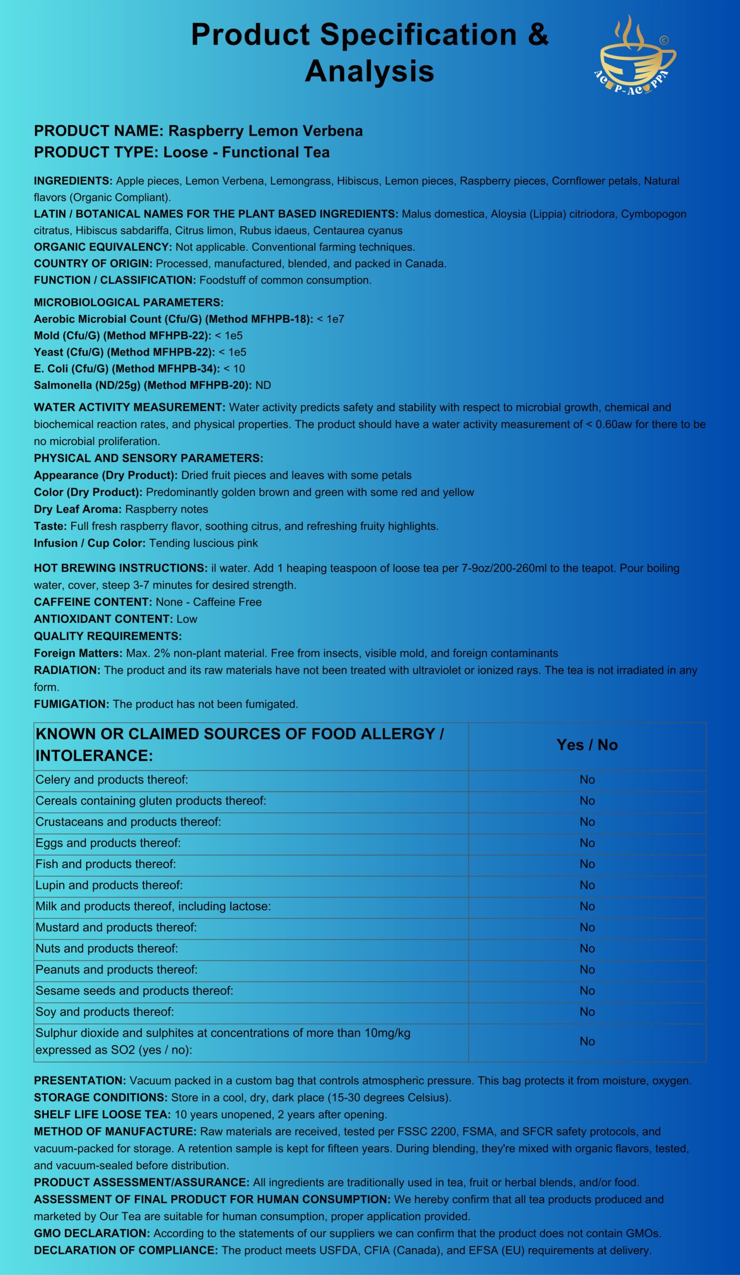 Luxury Ingredients: Apple pieces, Lemon Verbena, Lemongrass, Hibiscus, Lemon pieces, Raspberry pieces, Cornflower petals, Natural flavors (Organic Compliant).