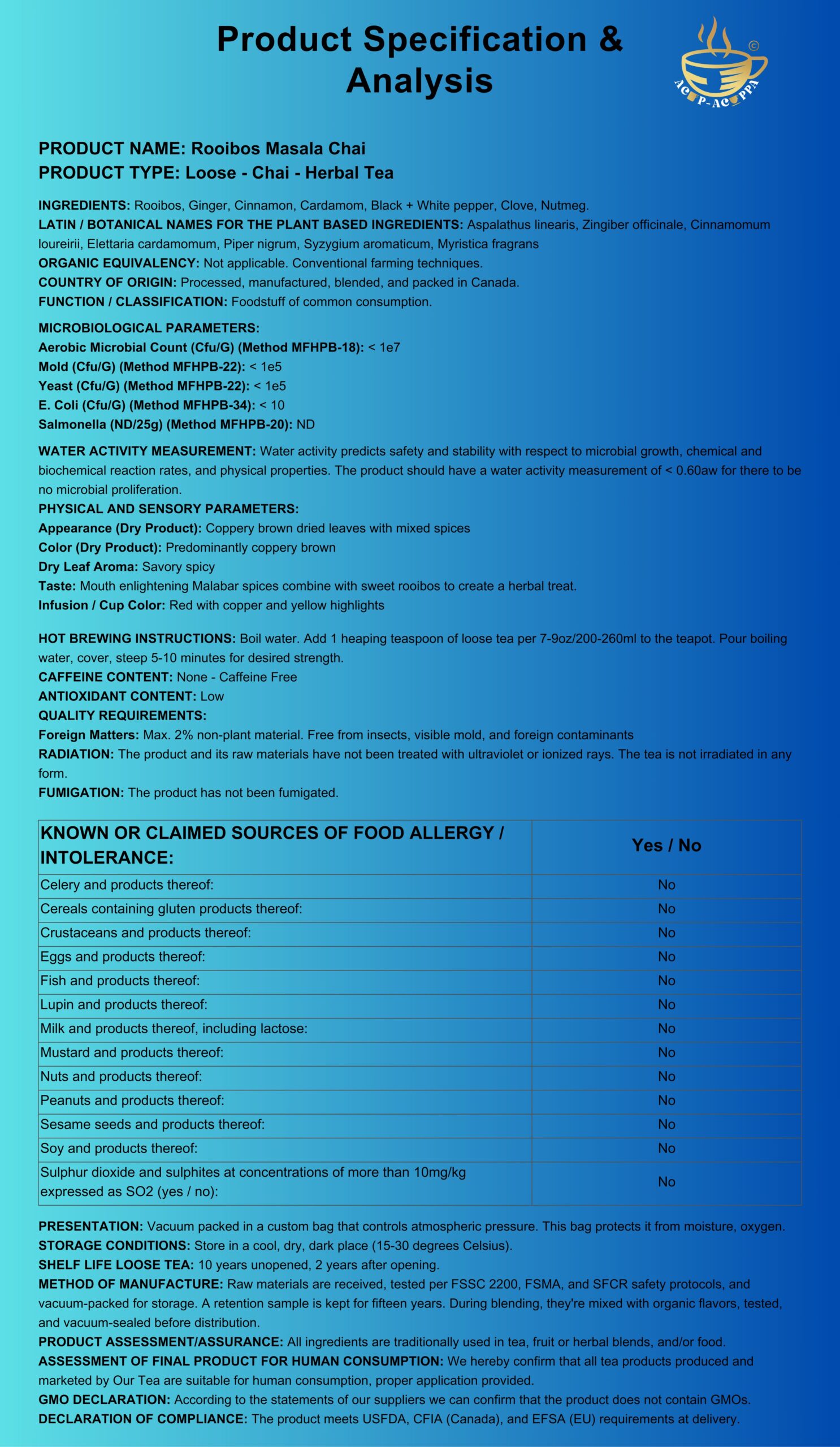 Luxury Ingredients: Rooibos, Ginger, Cinnamon, Cardamom, Black + White pepper, Clove, Nutmeg.