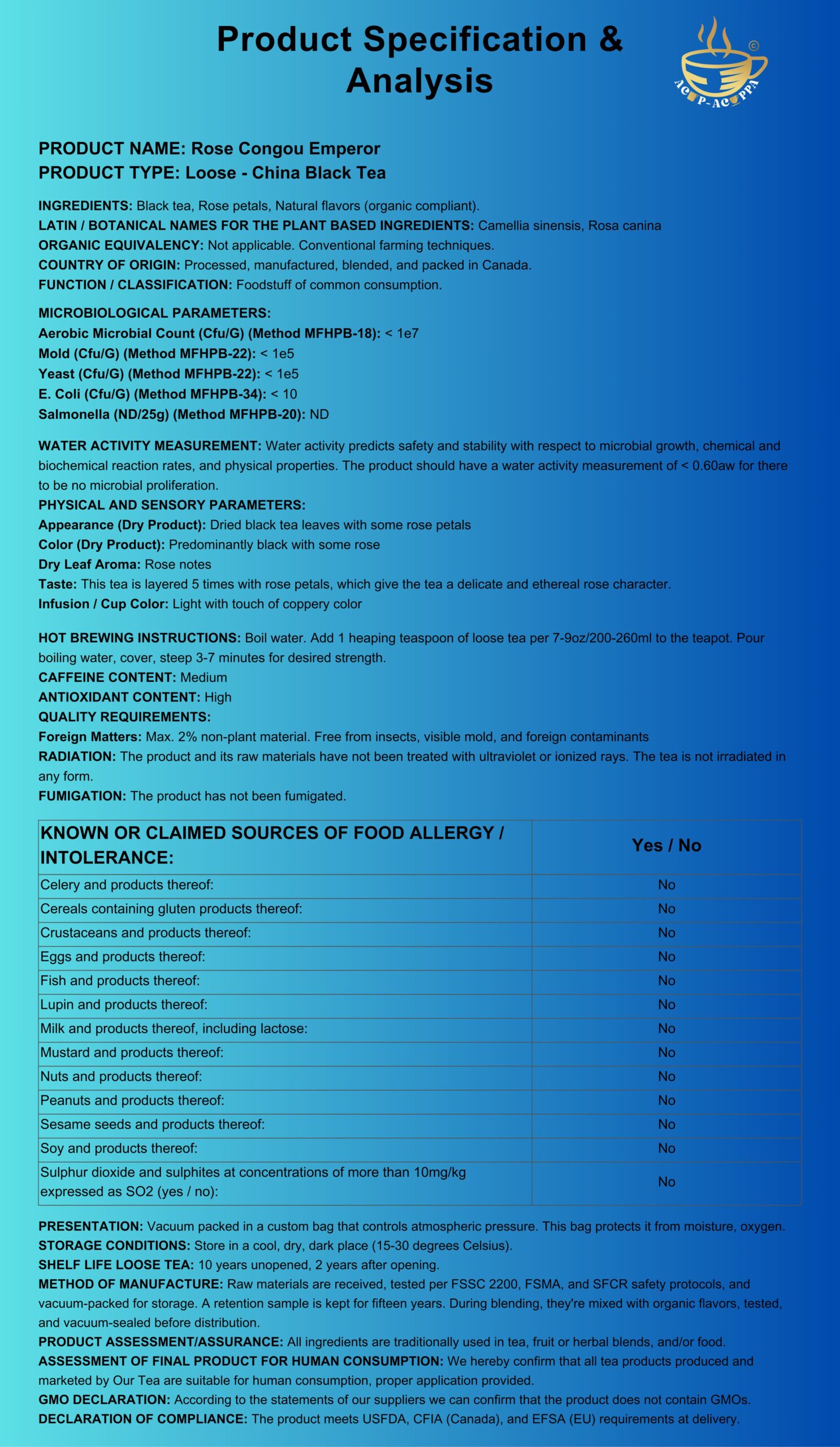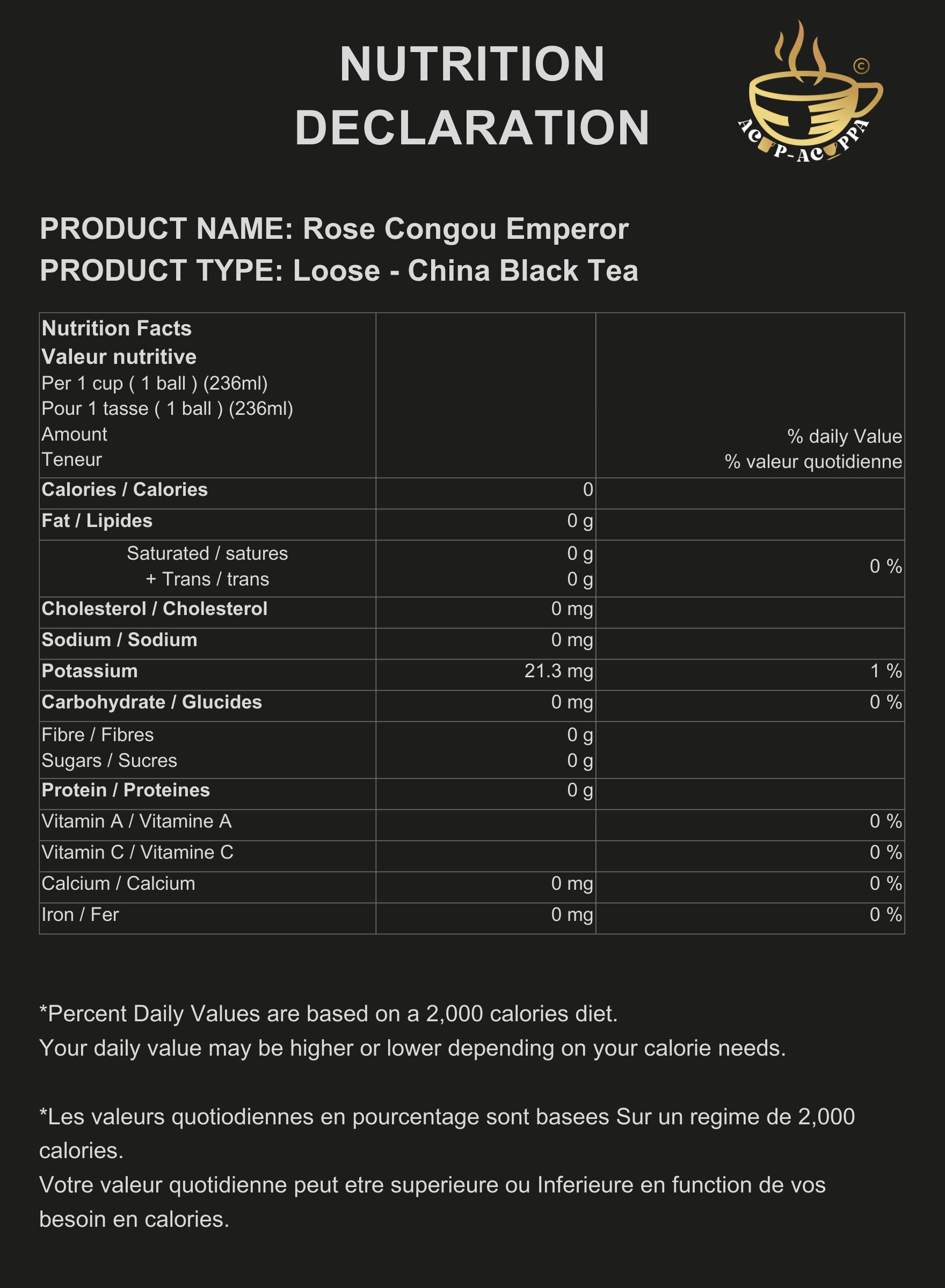 Luxury Ingredients: Black tea, Rose petals, Natural flavors (organic compliant).